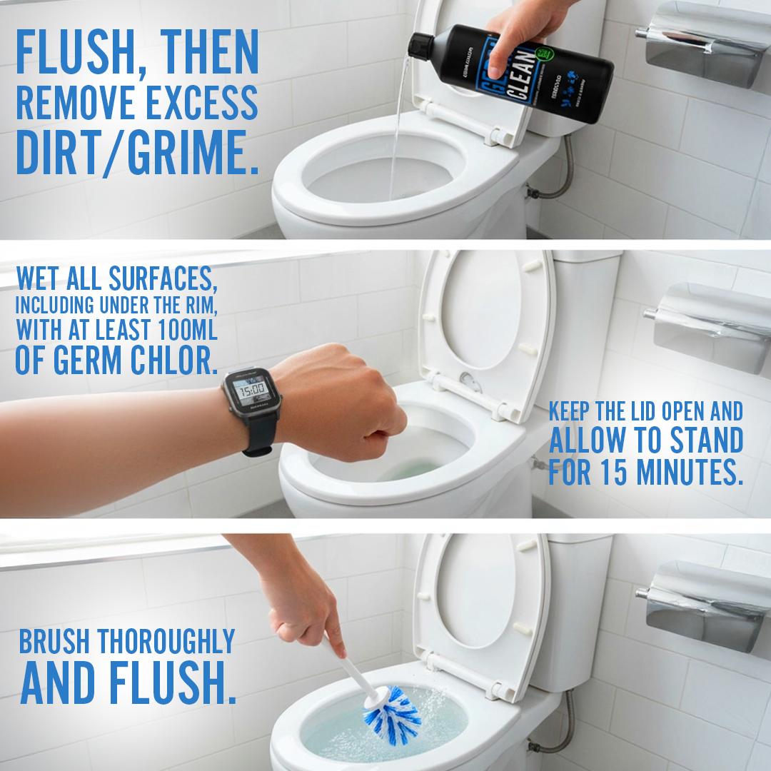 Germ Chlor is a perfumed thickened bleach with added detergent. Concentrated disinfectant.