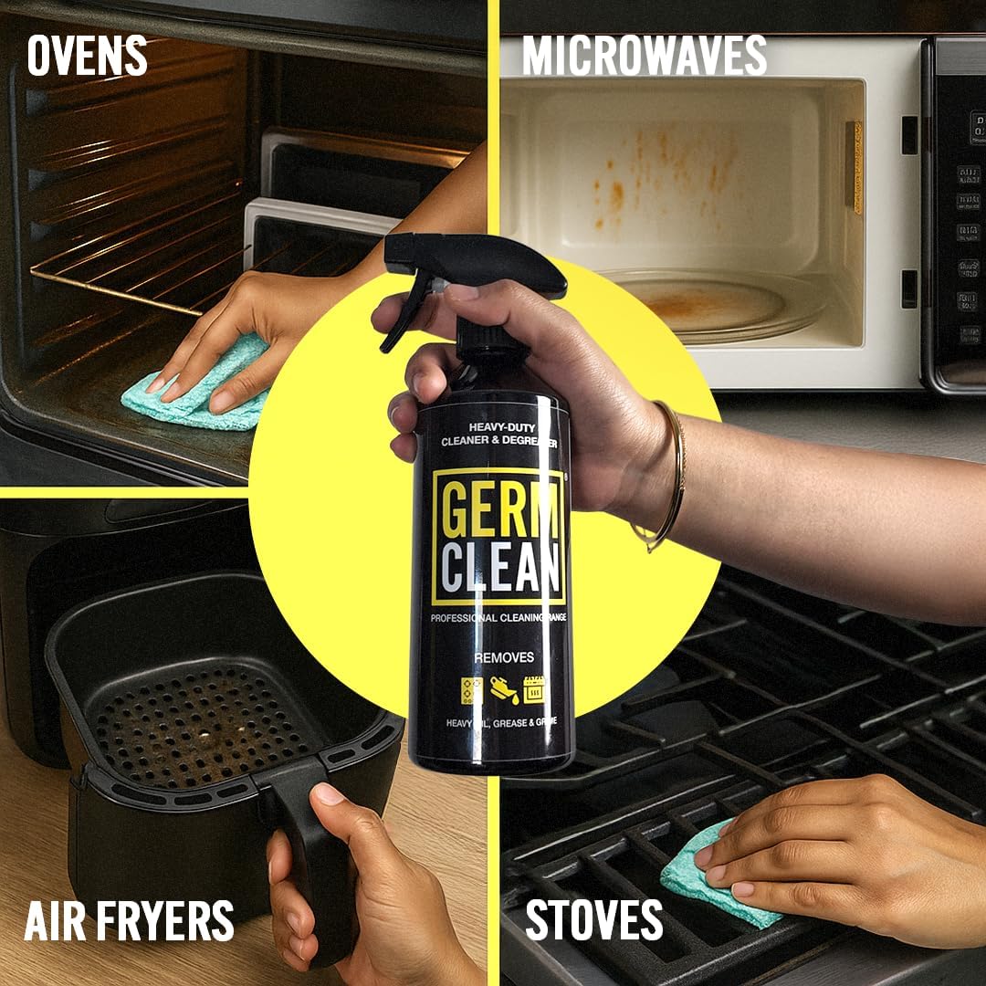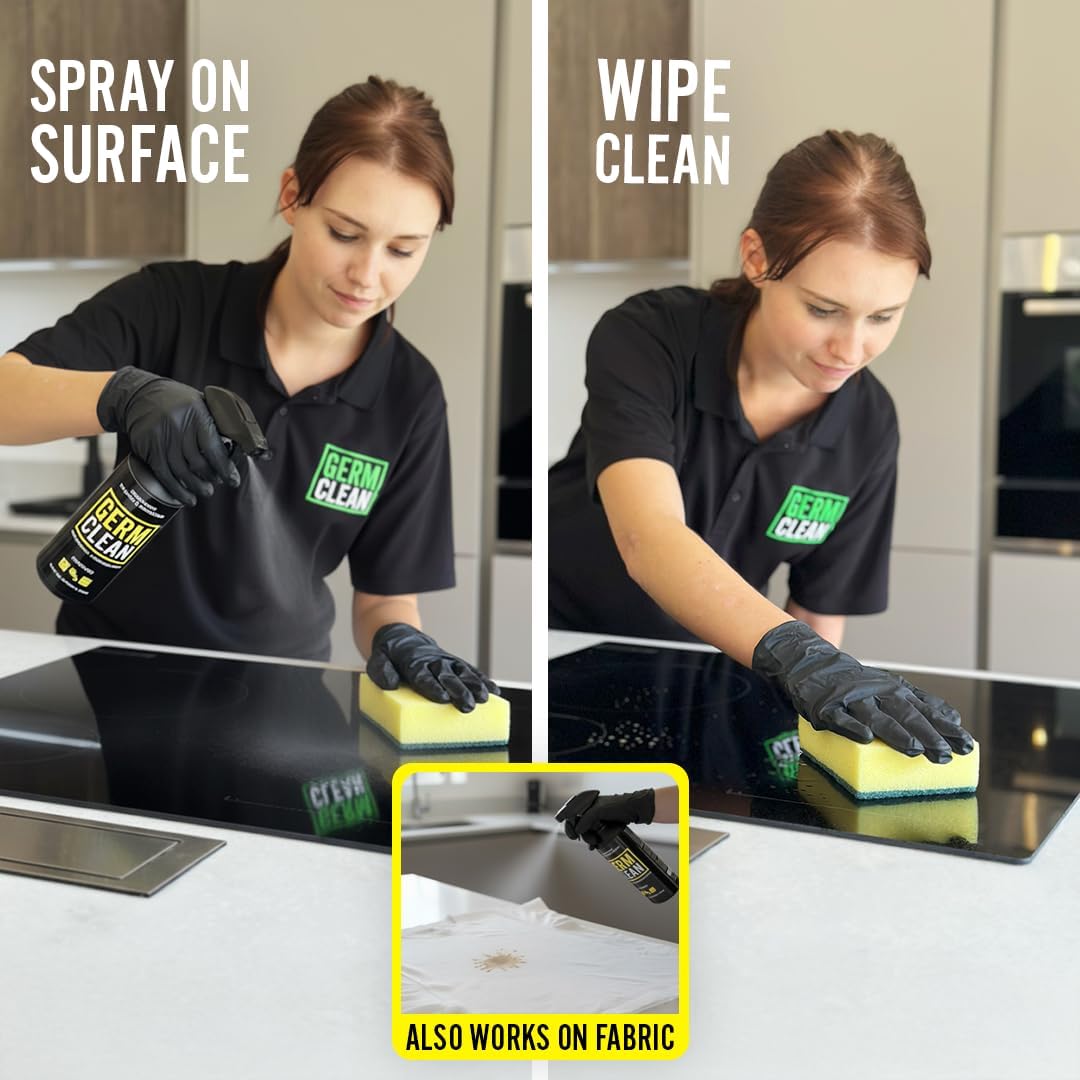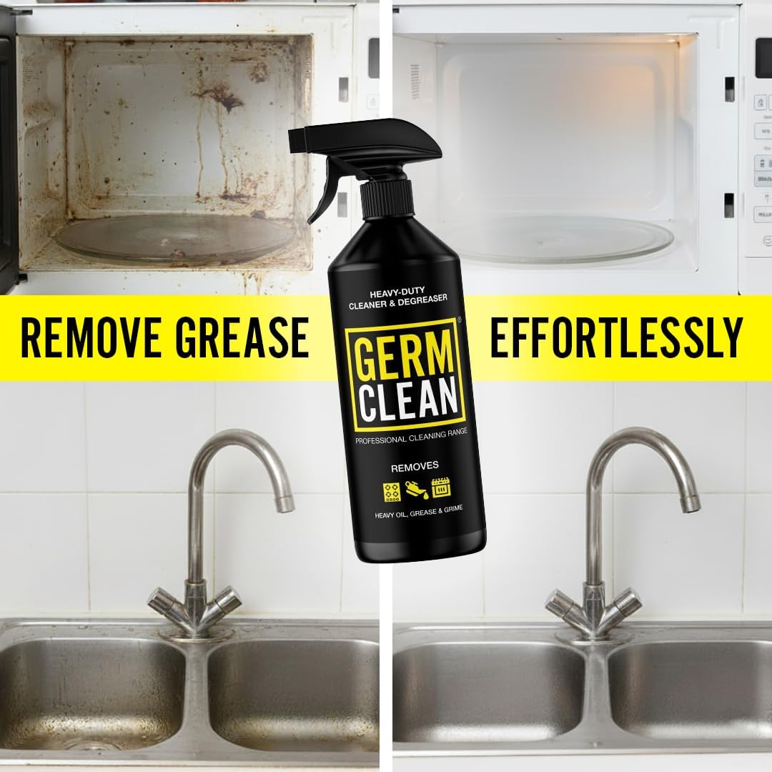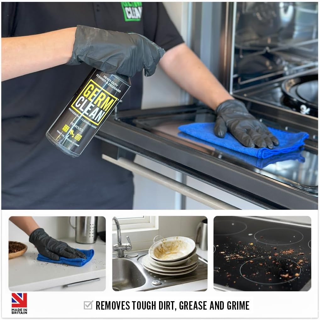 Germ Clean Heavy-Duty Cleaner & Degreaser is ideal for use in the kitchen and is formulated to remove grease, oil and fat in all situations. Easily removes ingrained soil and heavy grease from a variety of washable surfaces. Ideal for use on cooker hoods, ovens, floors and walls. It can also be used on fabrics (curtains, clothes, sofas etc.) or any porous material.