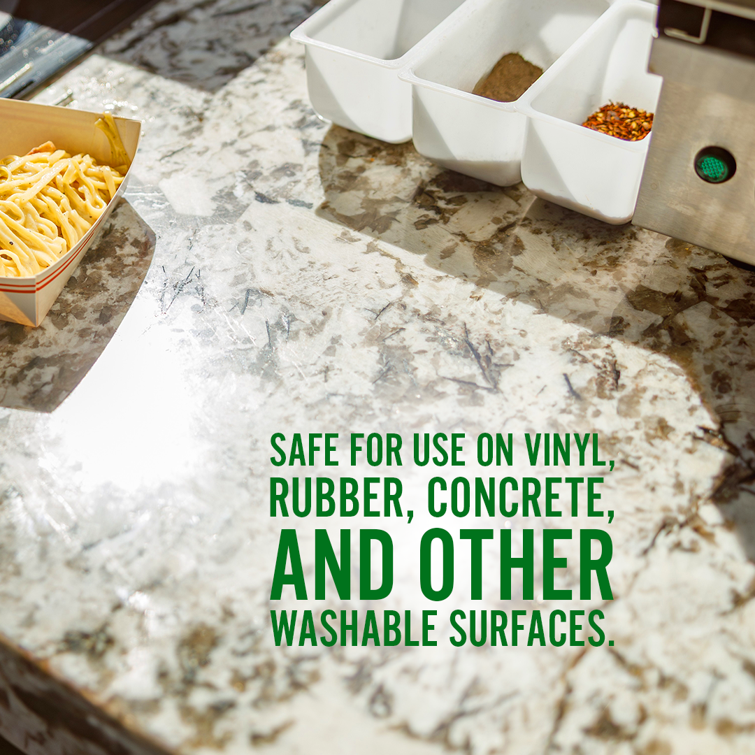 Germ Clean Multi-Surface Cleaner and Disinfectant contains an alkali formulation to help clean dirty, busy traffic areas and surroundings. It can remove general and heavy soiling from all hard washable surfaces and unpolished floors – including, vinyl, rubber and concrete.